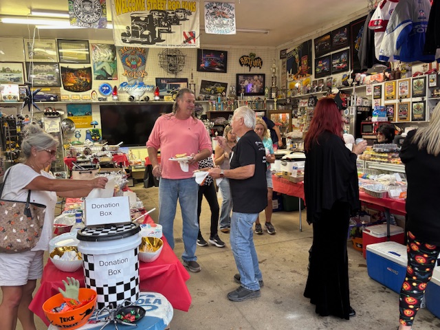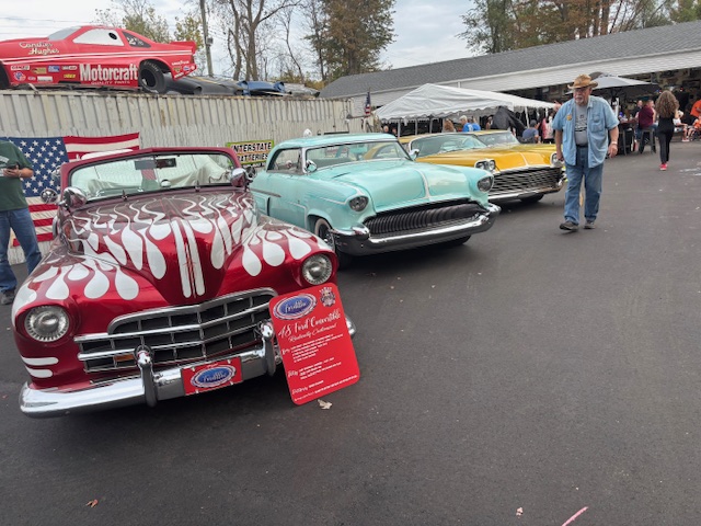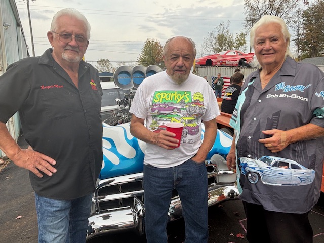 Bob”SHA-BOOM”FRYZ know’s how to throw a car party, as his end of the season annual BONFIRE and good ol’ car people-about 200, epicurion good ol’ boys and ladies country style home food stuph’s and fine beverages… is a car persons delight. The cars, about 100 of them… from stock to rock, street rods to street machines and way good nostalgic customs: Barris, Starbird, Winfield, Boogieman and Fryz’… they all enchanted the field of view. All four of Bob’s SH-BOOM’s flame throwing vehicle’s lighted the night. The trio photo of Boogieman,Teddy ‘Z’ and Bob SH-BOOM says it all… OH WHAT A NIGHT!!! Enjoy the pics.