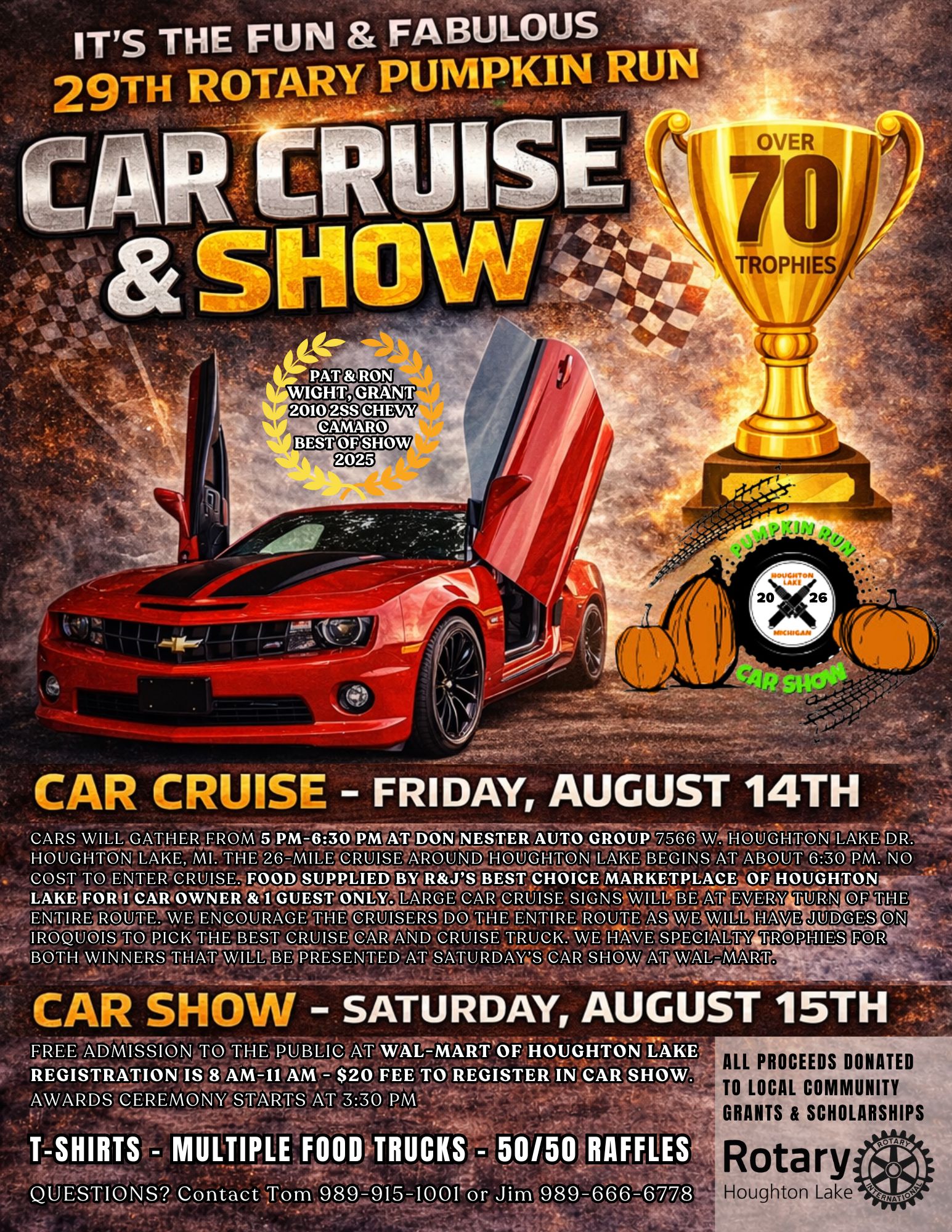 29th Annual Houghton Lake Rotary Club Pumpkin Run Car Cruise/Show
