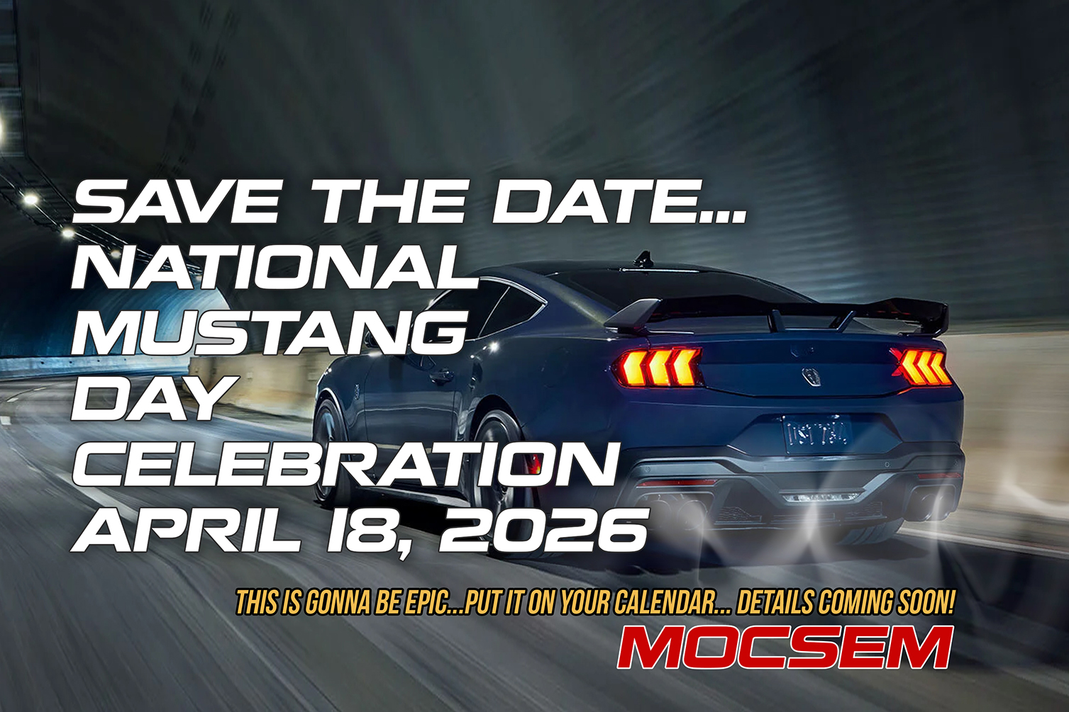 National Mustang Day Celebration. Let's get them out of winter storage and ready for car season with this amazing car season opener! You don't want to miss it... More details coming soon....