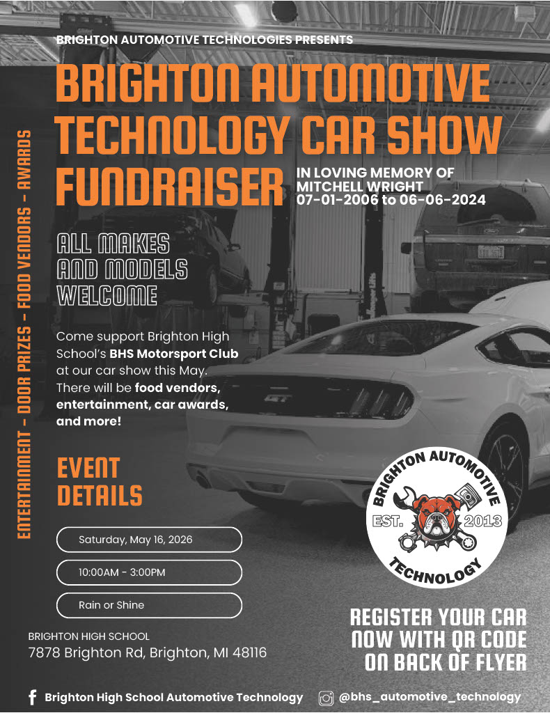 Come Support Brighton High School Motorsports Club and Program. there will be food vendors, entertainment, awards, and more.