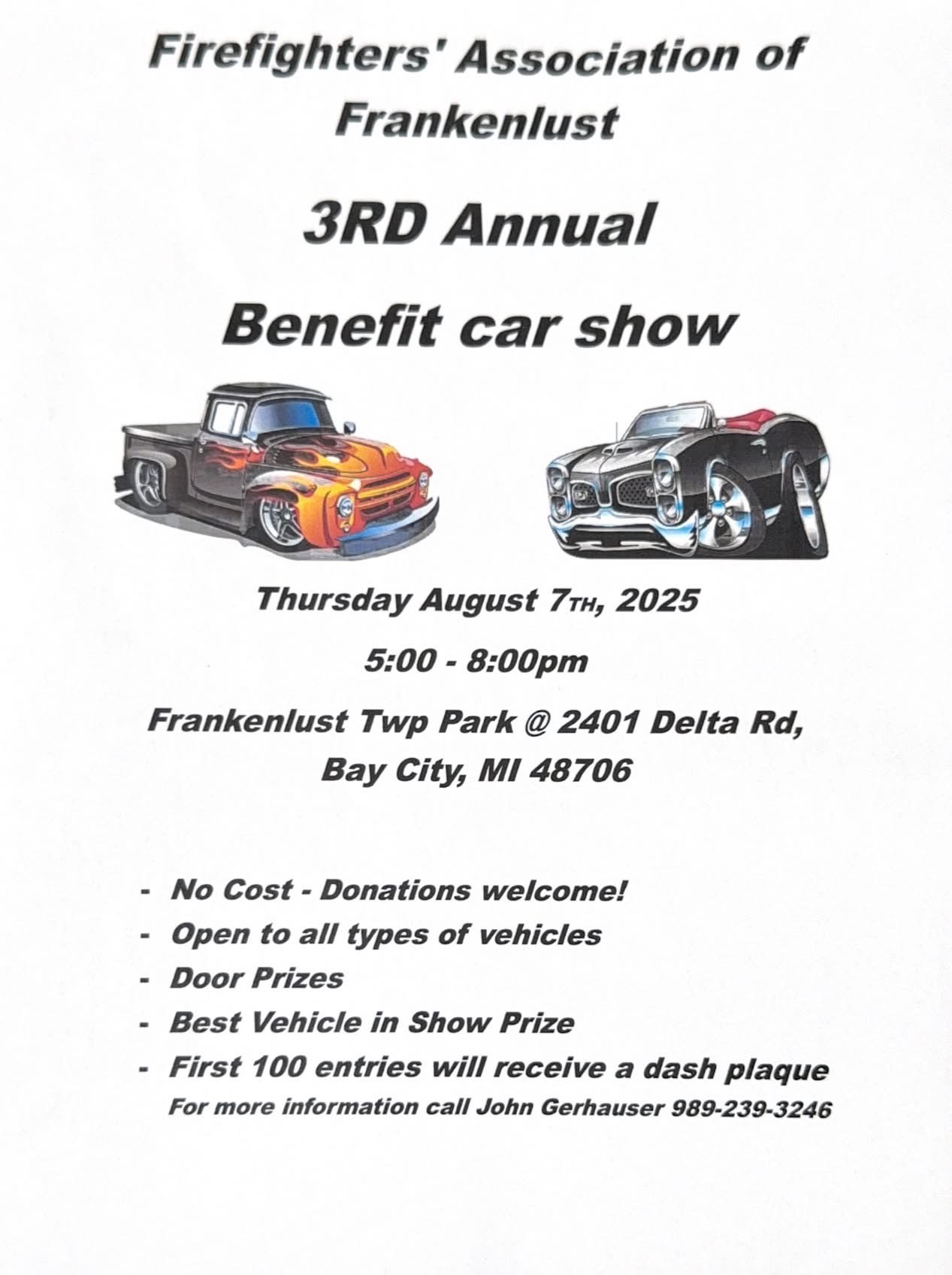 Firefighters’ Association of Frankenlust 3rd Annual Benefit Car Show